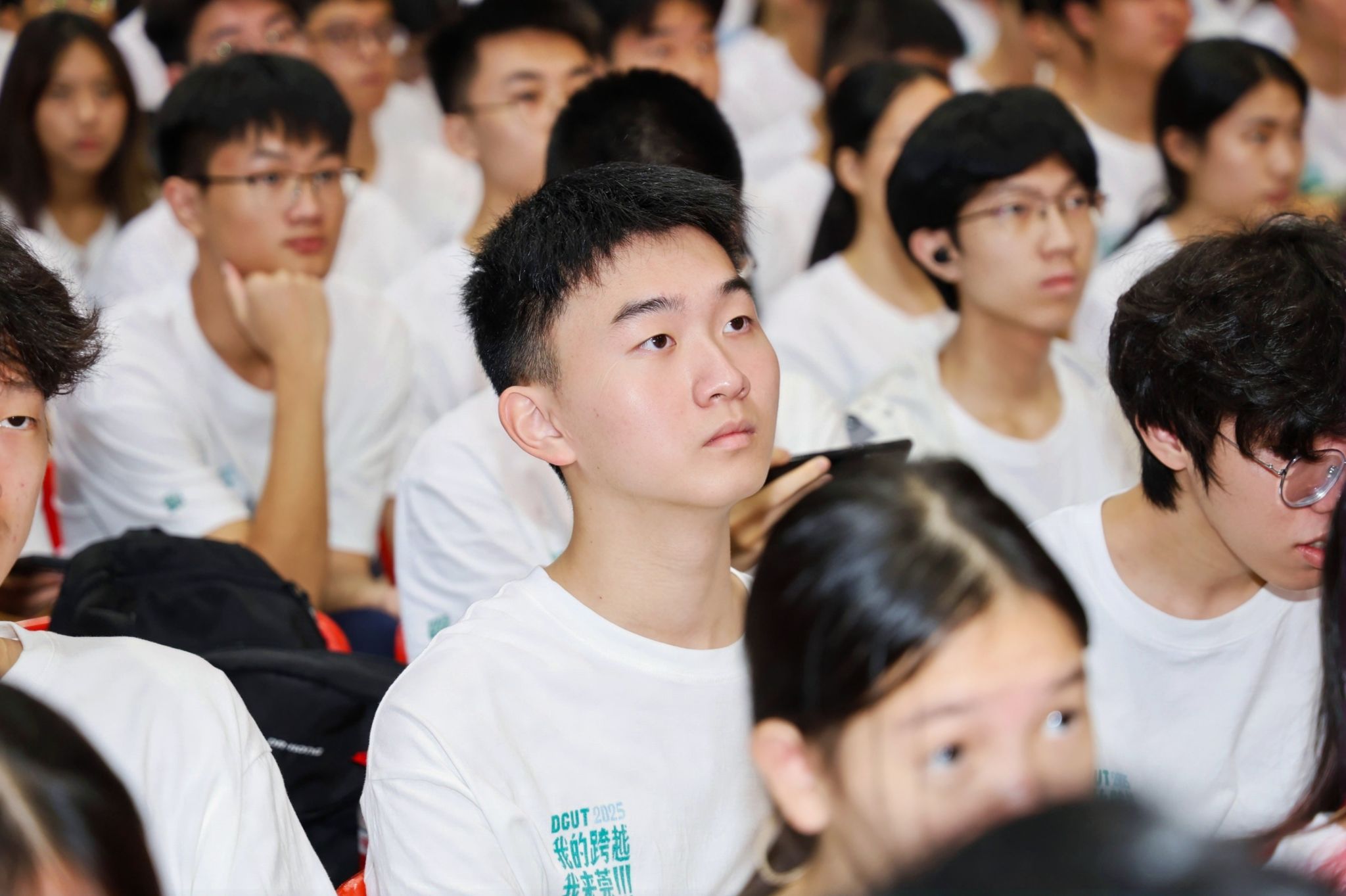 随后,在全场人员的见证下,主席台前排领导为新生代表佩戴校徽,全体新生同时集体戴上校徽。一枚枚校徽闪耀胸前,标志着同学们正式加入莞工大家庭,成为了“莞工人”,开启属于自己的青春跨越之旅。