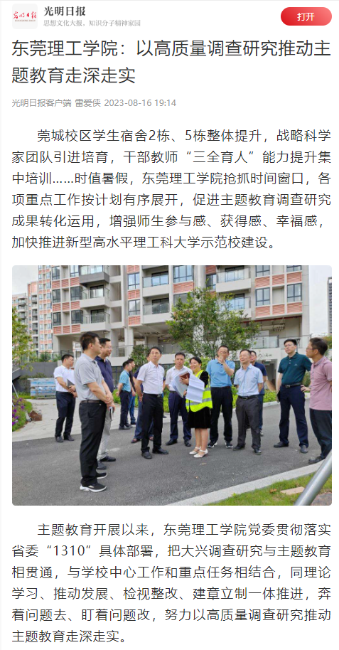 各职能部门和二级学院围绕师生学习生活的问题难题、痛点堵点,走进实验室、课堂、镇街园区和企事业单位,把情况摸清楚,把症结分析透,细化形成涵盖社区党建品牌建设、学科专业发展、产教联合培养模式创新、青年教师成长发展、科研团队建设等多个调研课题,切实拿出破解难题的管用措施。