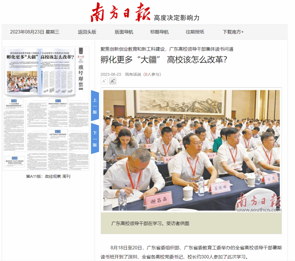 读书班把创新创业教育改革和新工科建设摆在突出位置,释放了推动广东高校改革发展、培养更多优秀科创人才、服务“制造业当家”的强烈信号。
