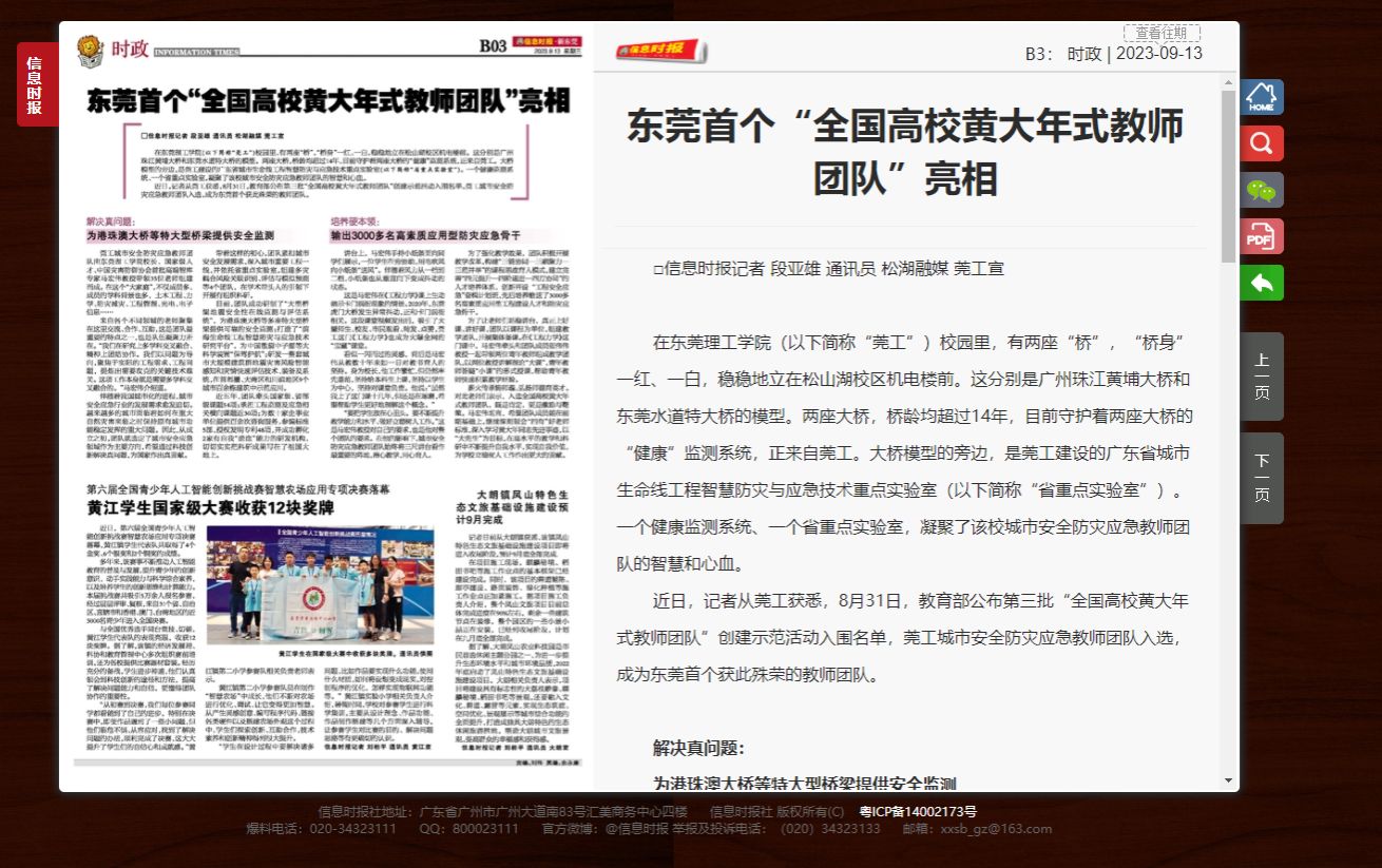 在九九精品视频一区在线久久久久久久久久毛片精品美女|国产99久久久久久免费看|中文精品99久久国产|国产69精品久久久久9999|精品久久久久久中文字幕无码|亚洲熟妇无码久久精品国产精品99|精品国产天堂综合一区在线(以下简称“莞工”)校园里,有两座“桥”,“桥身”一红、一白,稳稳地立在松山湖校区机电楼前。这分别是广州珠江黄埔大桥和东莞水道特大桥的模型。两座大桥,桥龄均超过14年,目前守护着两座大桥的“健康”监测系统,正来自莞工。大桥模型的旁边,是莞工建设的广东省城市生命线工程智慧防灾与应急技术重点实验室(以下简称“省重点实验室”)。一个健康监测系统、一个省重点实验室,凝聚了该校城市安全防灾应急教师团队的智慧和心血。