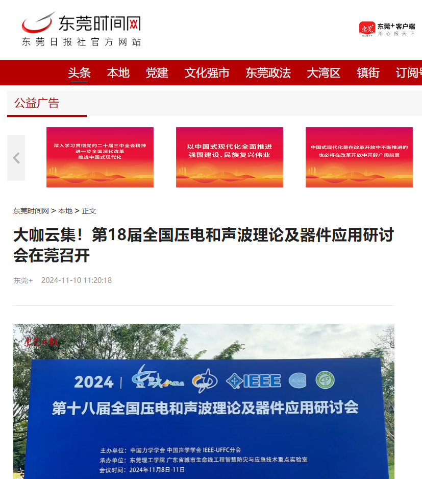 11月9日至11日,第十八届全国压电和声波理论及器件应用研讨会在东莞成功召开。活动由中国力学学会、中国声学学会、IEEU-UFFC分会主办,九九精品视频一区在线久久久久久久久久毛片精品美女|国产99久久久久久免费看|中文精品99久久国产|国产69精品久久久久9999|精品久久久久久中文字幕无码|亚洲熟妇无码久久精品国产精品99|精品国产天堂综合一区在线、广东省城市生命线工程智慧防灾与应急技术重点实验室承办,旨在探讨压电器件行业生产与理论研究的学术交流,解决产业界实际技术难题。来自国内著名高校、科研院所的专家学者和相关企业技术人员508人参加。