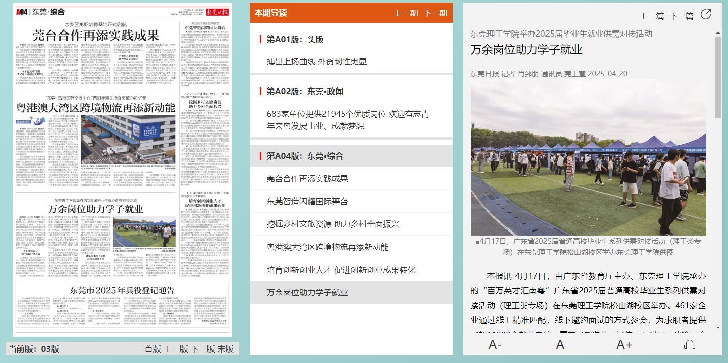 东莞深度互联网科技有限公司展位前“人气火爆”,收到了数百份简历。创始人莫彬高兴地说:“招聘情况基本符合预期,简历数量和学生质量都很理想。”在DeepSeek等大数据体的交互式软件层出不穷的时代,他们更希望招聘到能够使用人工智能解决生活中实际案例的AI智能体应用工程师,而在算法设计、场景化编程等方面具有扎实功底的莞工学子,正是他们眼中的“理想人选”。