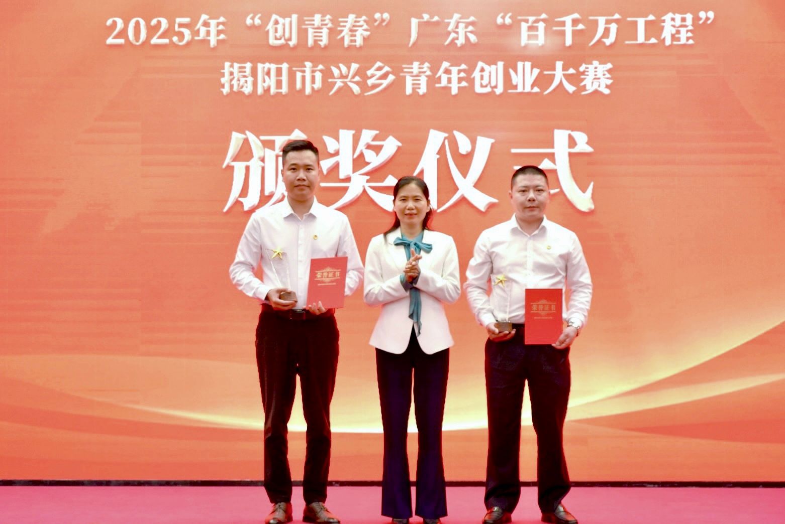 4月30日,“青春心向党,建功‘百千万’——揭阳共青团纪念五四运动106周年主题团日活动”在揭阳市举行,活动为2025年“创青春”广东“百千万工程”揭阳市兴乡青年创业大赛获奖项目颁奖,我校驻揭东区服务队助力的两个项目分别夺得大赛一等奖和三等奖。揭阳市共有18支队伍入围大赛终审决赛,展开激烈角逐。经过项目陈述、回答评委提问等环节,对创业项目进行全方位介绍后,我校“双百行动”结对共建的揭东区参赛的“绿畅农业—...
